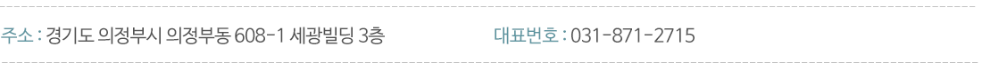 경기도 의정부시 의정부동 608-1 세광빌딩 3층    사업자등록번호 :127-86-32704     대표 : 김경섭
